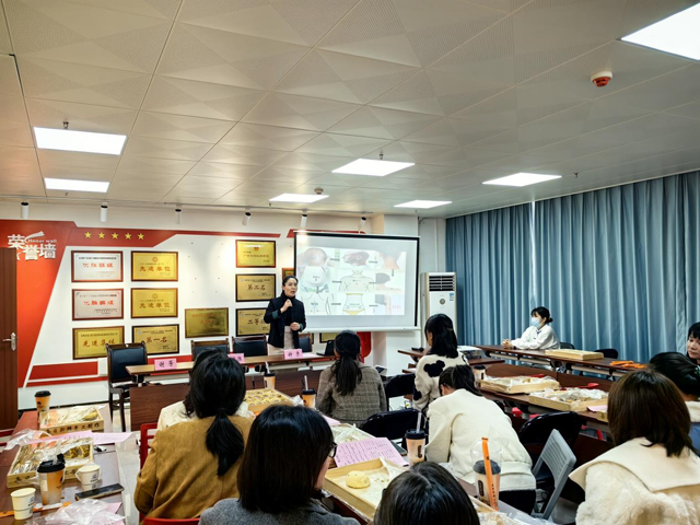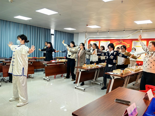 授課過程中,講師還為女職工設置了中醫(yī)文化體驗環(huán)節(jié)。專業(yè)的中醫(yī)養(yǎng)生教練身著傳統(tǒng)服飾,身姿矯健地站在前方,為女職工們示范八段錦的標準動作。“雙手托天理三焦,左右開弓似射雕……” 教練一邊口中念念有詞,一邊緩緩展示著一招一式,動作行云流水、剛?cè)嵯酀?。練習過程中,女職工們屏氣斂息,專注于每一個動作的細節(jié),感受著身體的拉伸與舒展,仿佛在一招一式間與古老的中醫(yī)養(yǎng)生智慧對話。八段錦不僅讓女職工們體驗到傳統(tǒng)健身方式的魅力,更在動靜結(jié)合中舒緩了身心壓力,調(diào)節(jié)了氣息。許多女職工表示,練習完八段錦后,身體微微發(fā)熱,整個人都神清氣爽,仿佛充滿了能量。
