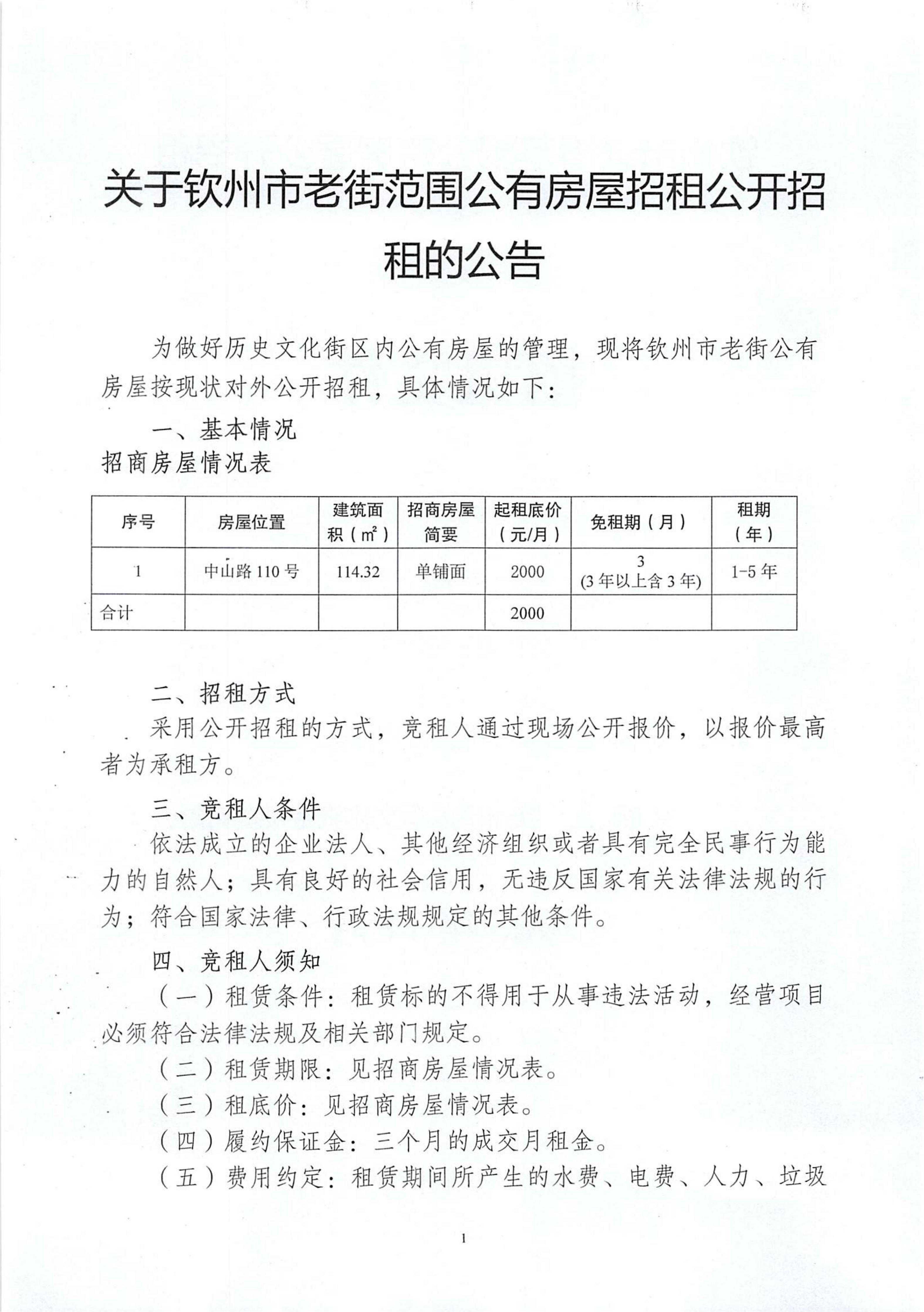 關(guān)于欽州市老街范圍公有房屋招租公開(kāi)招租的公告