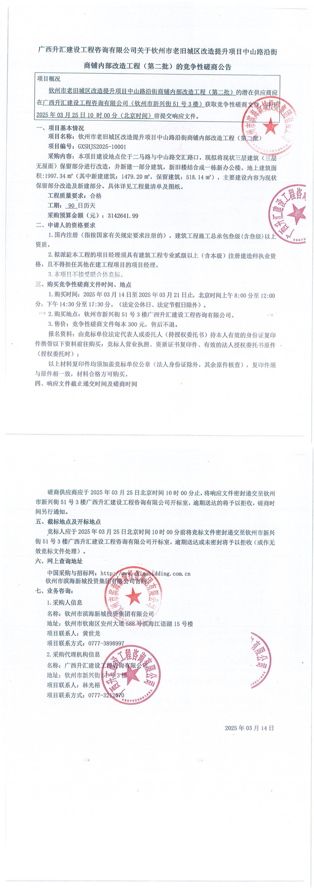 競(jìng)爭(zhēng)性磋商公告-欽州市老舊城區(qū)改造提升項(xiàng)目中山路沿街商鋪內(nèi)部改造工程(第二批)