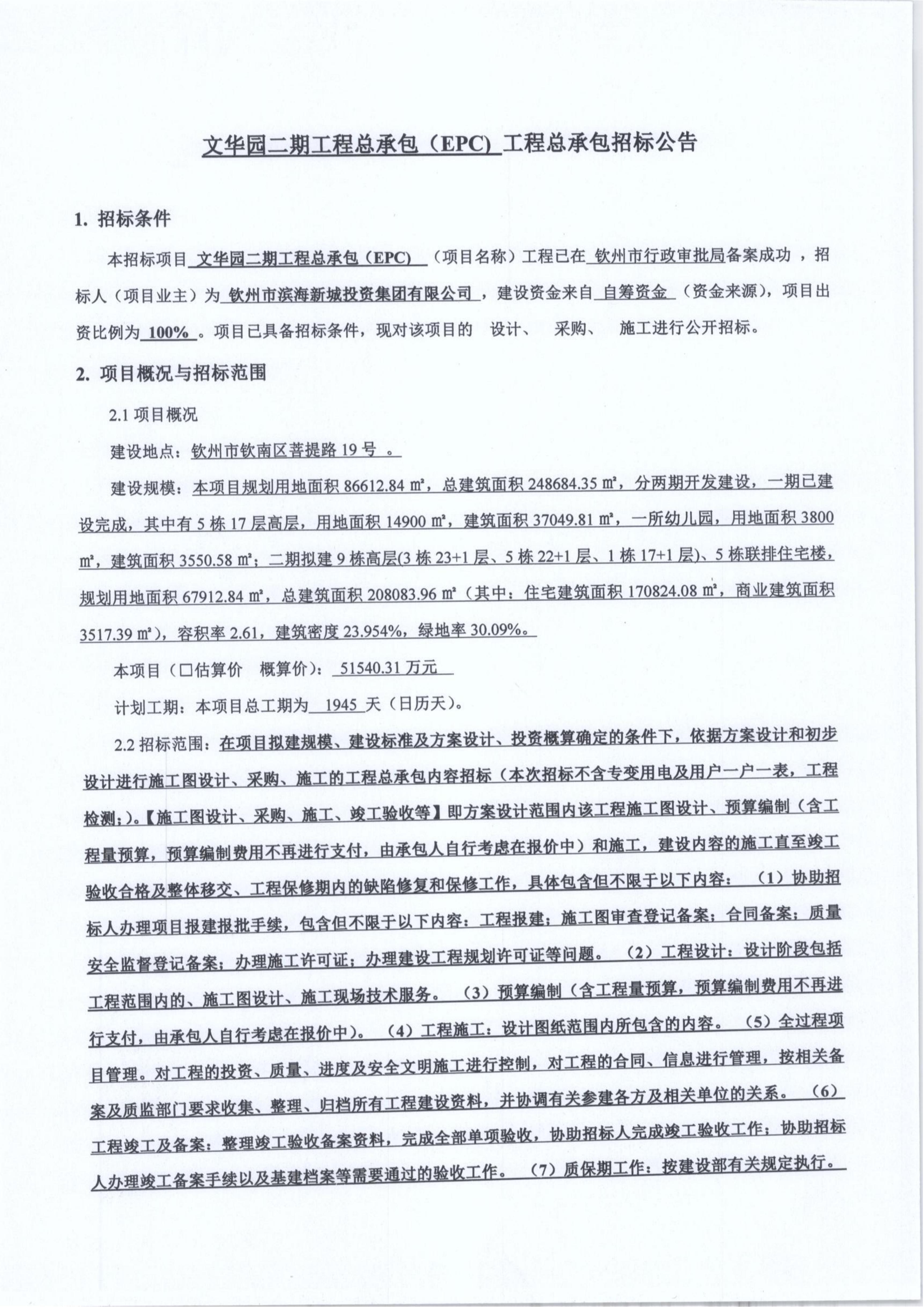 文華園二期工程總承包(EPC)工程總承包招標(biāo)公告