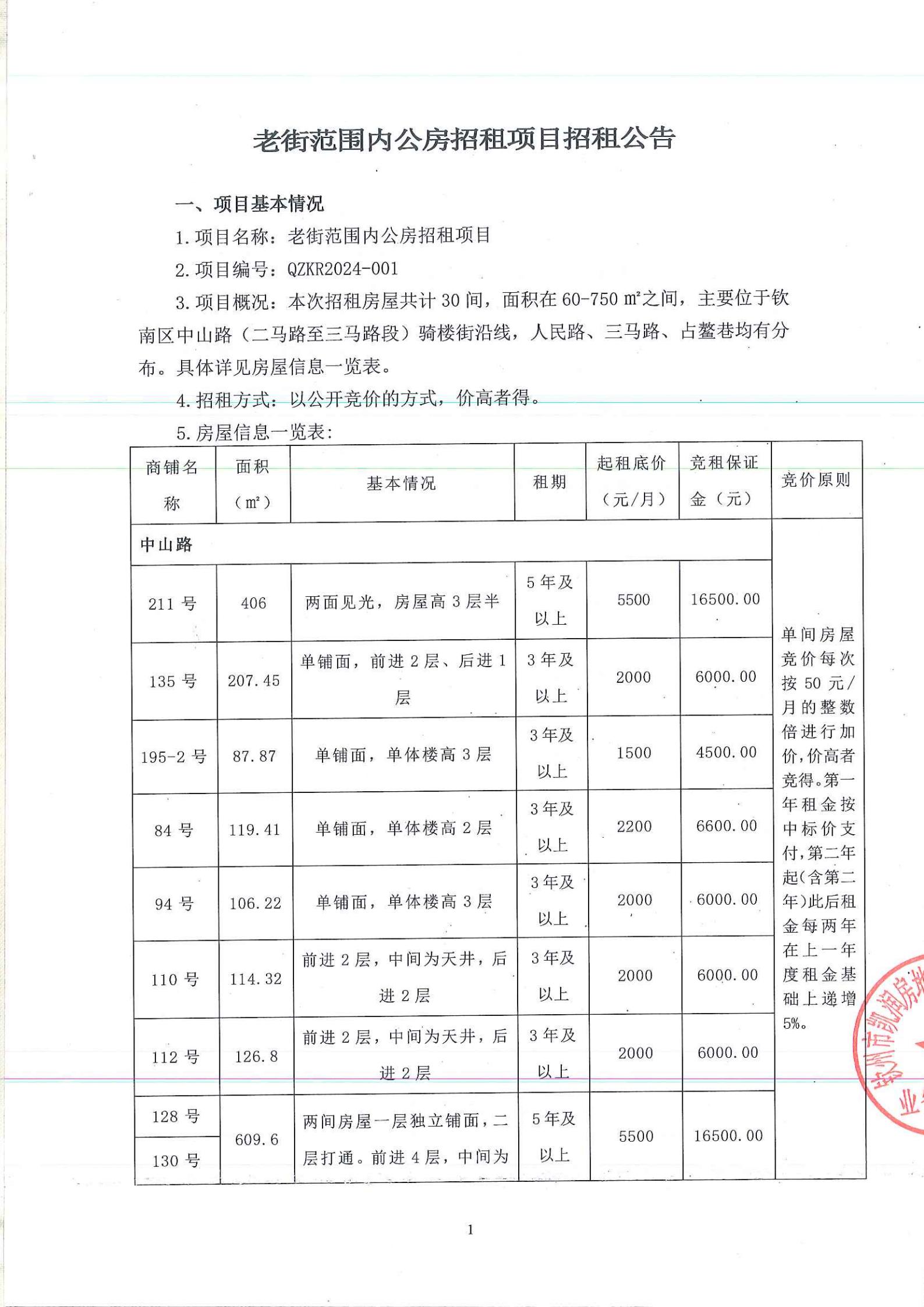 老街范圍內公房招租項目(項目編號:QZKR2024-006)招租公告