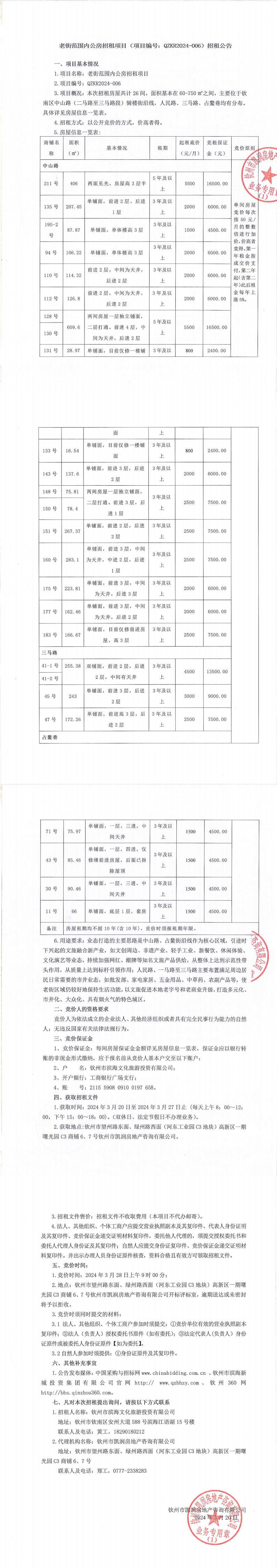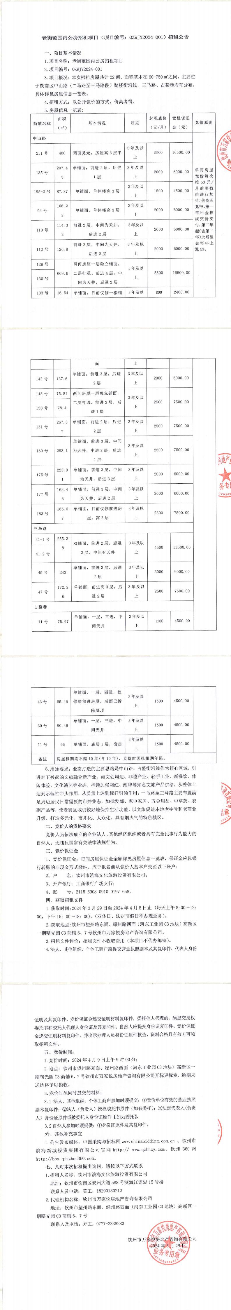 老街范圍內公房招租項目(項目編號:QZWJY2024-001)招租公告