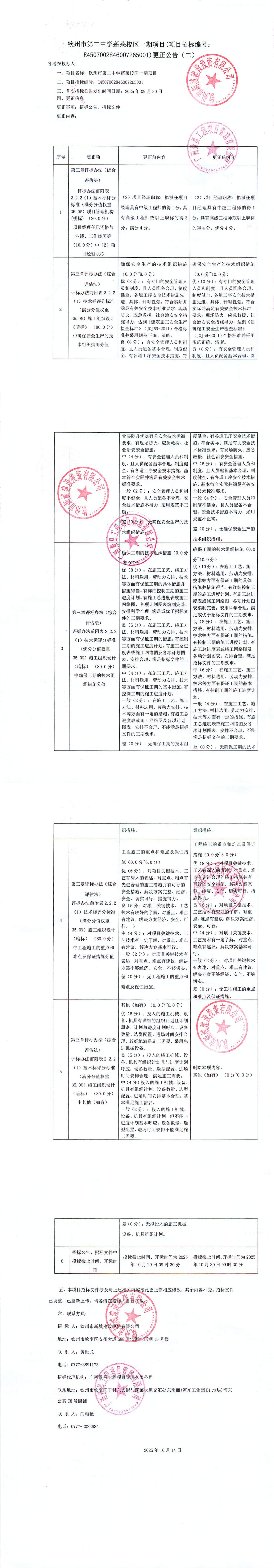 欽州市第二中學蓬萊校區(qū)一期項目(項目招標編號:E4507002846007265001)更正公告(二)