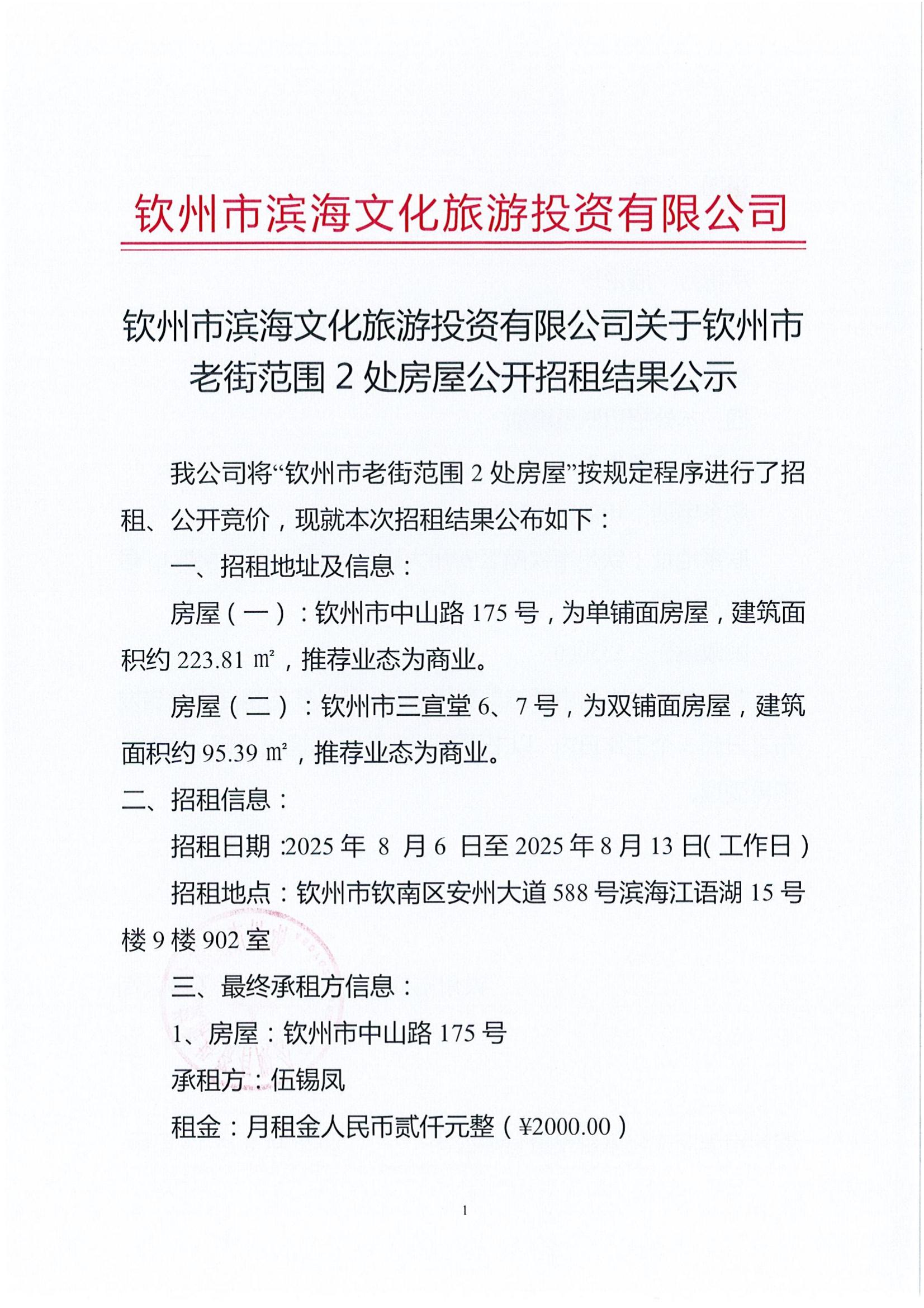 關(guān)于欽州市老街范圍2處公房公開招租結(jié)果公示