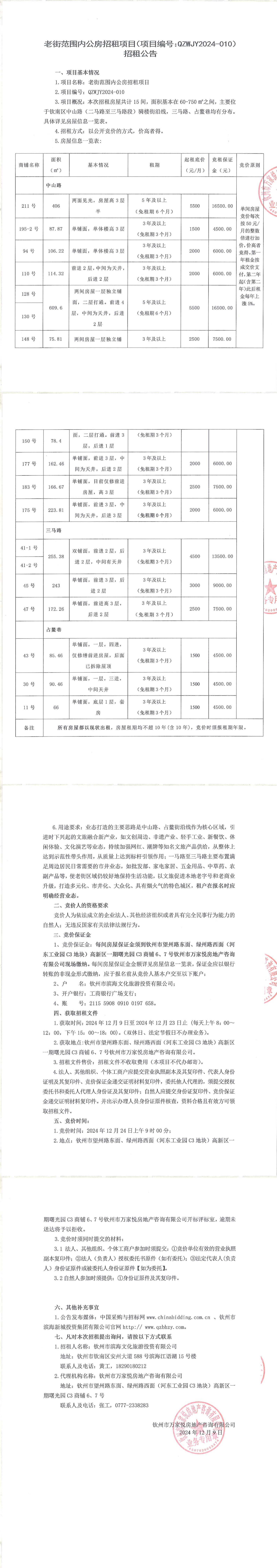 老街范圍內(nèi)公房招租項(xiàng)目(項(xiàng)目編號:QZWJY2024-010)招租公告