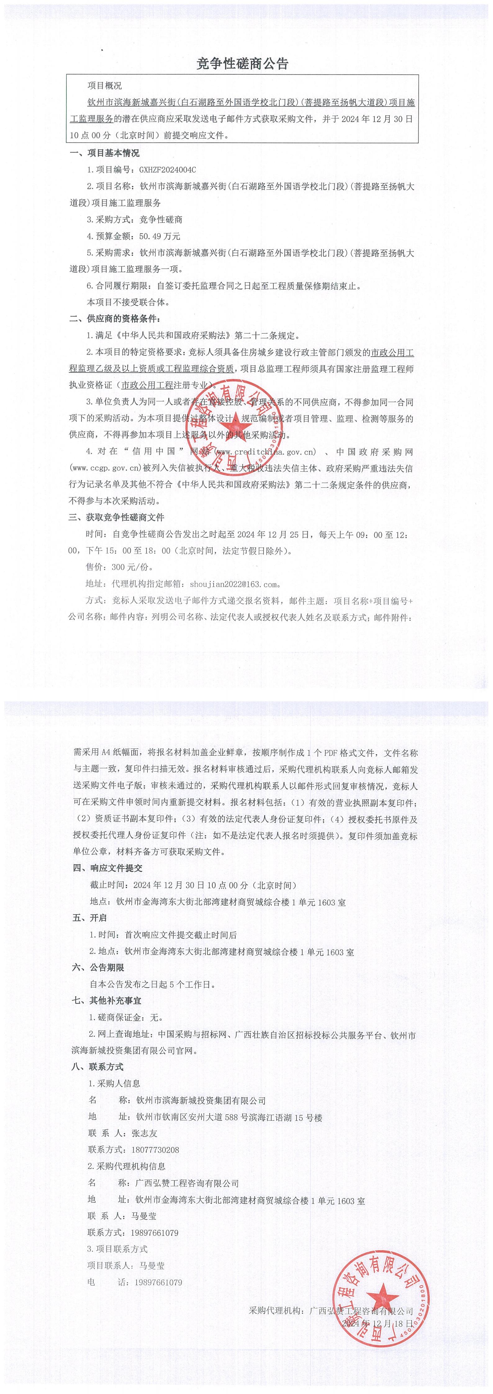 競爭性磋商公告(欽州市濱海新城嘉興街(白石湖路至外國語學(xué)校北門段)(菩...