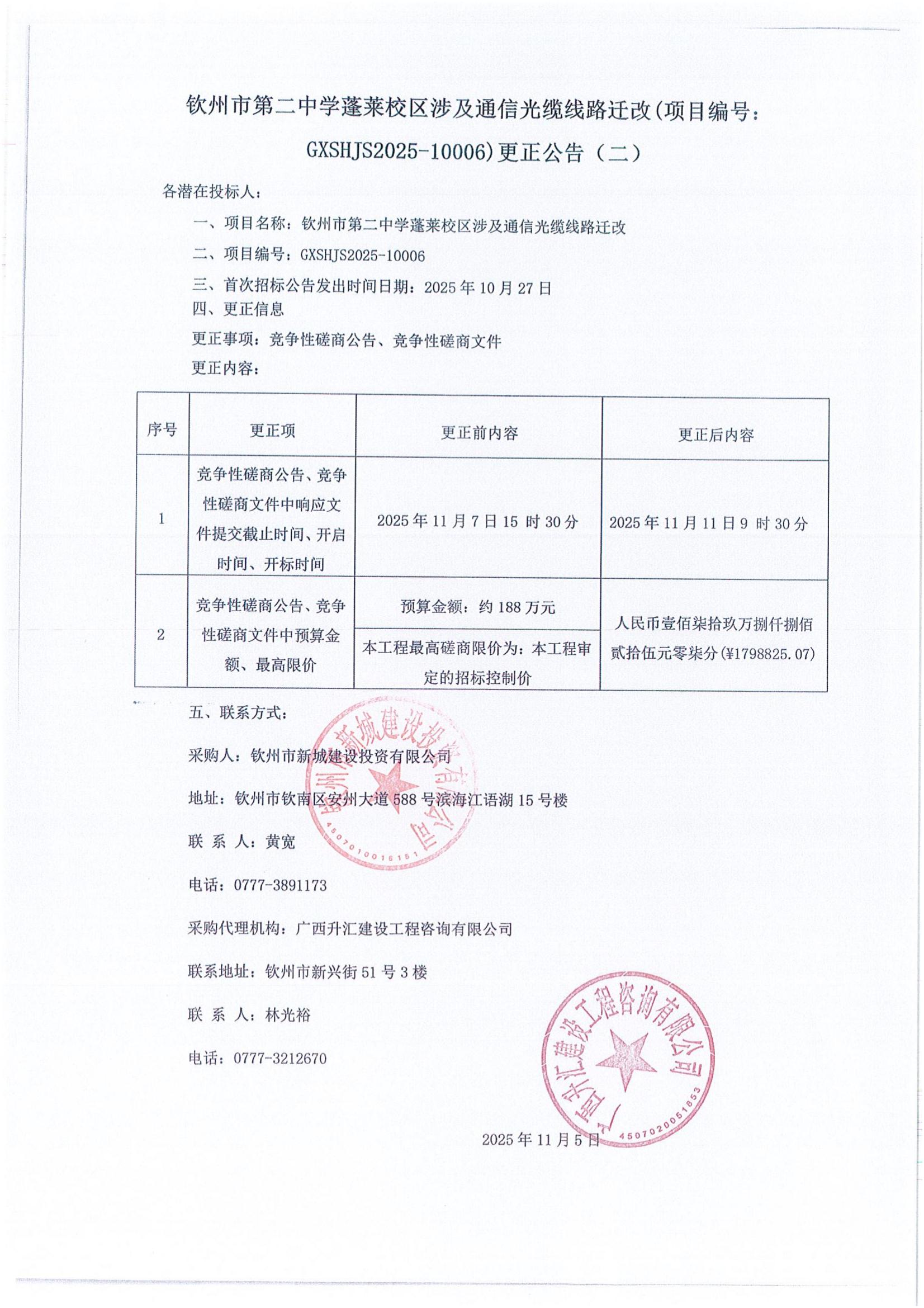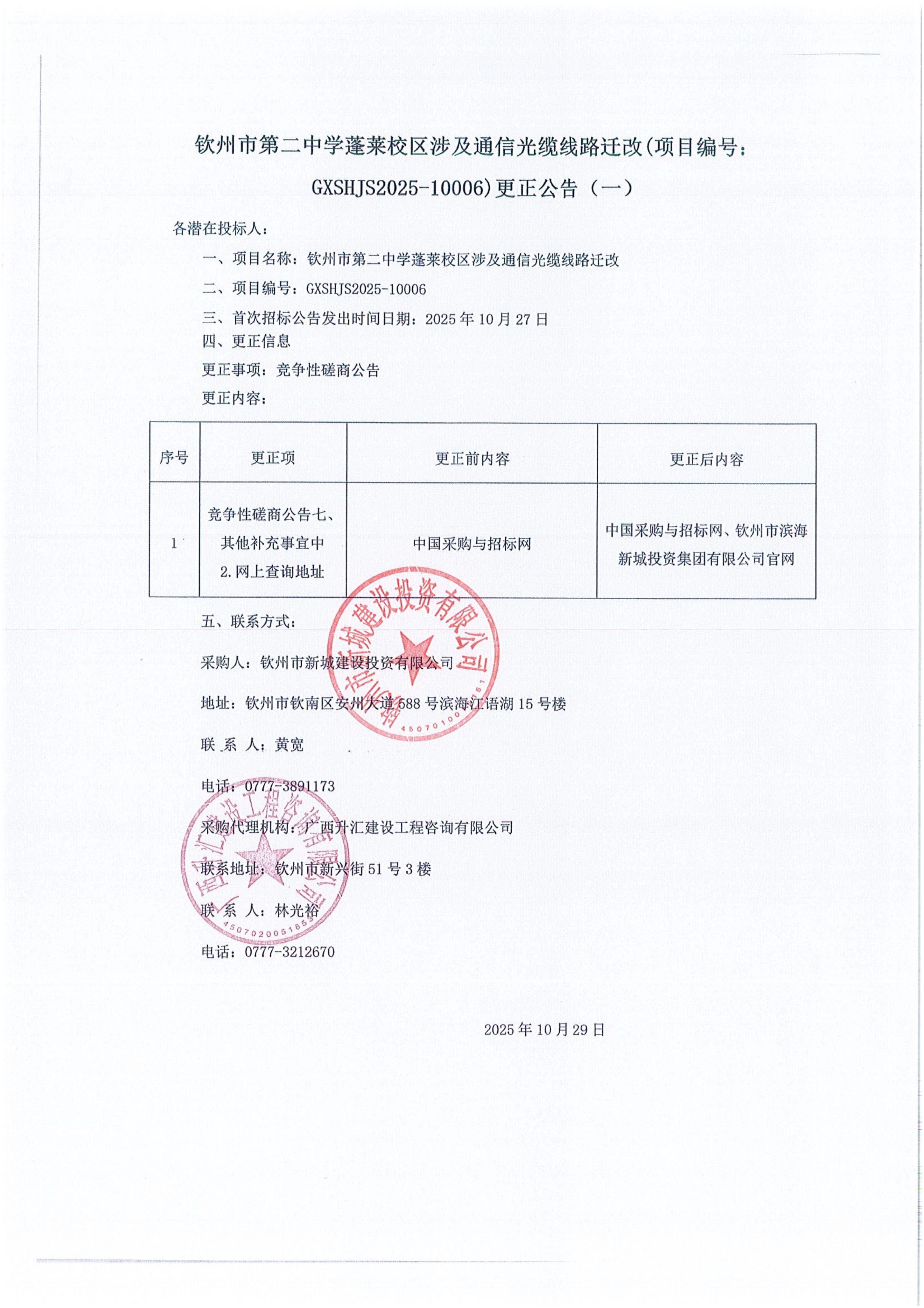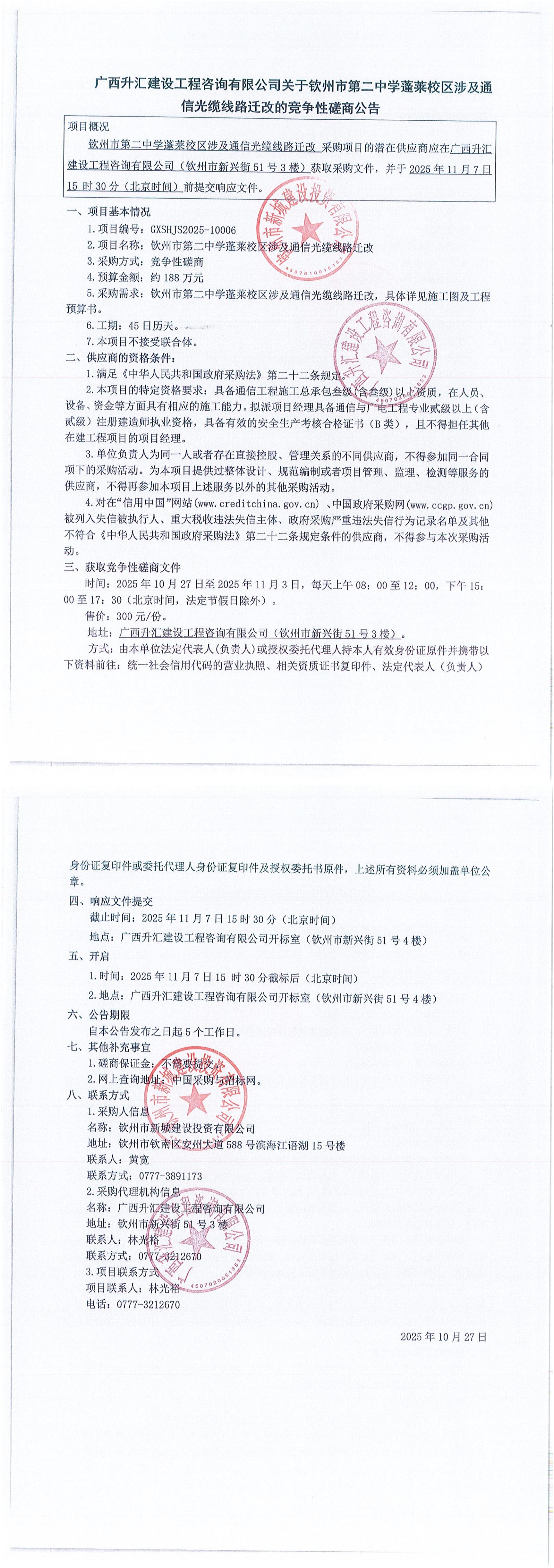 關(guān)于欽州市第二中學(xué)蓬萊校區(qū)涉及通信光纜線路遷改的競(jìng)爭(zhēng)性磋商公告