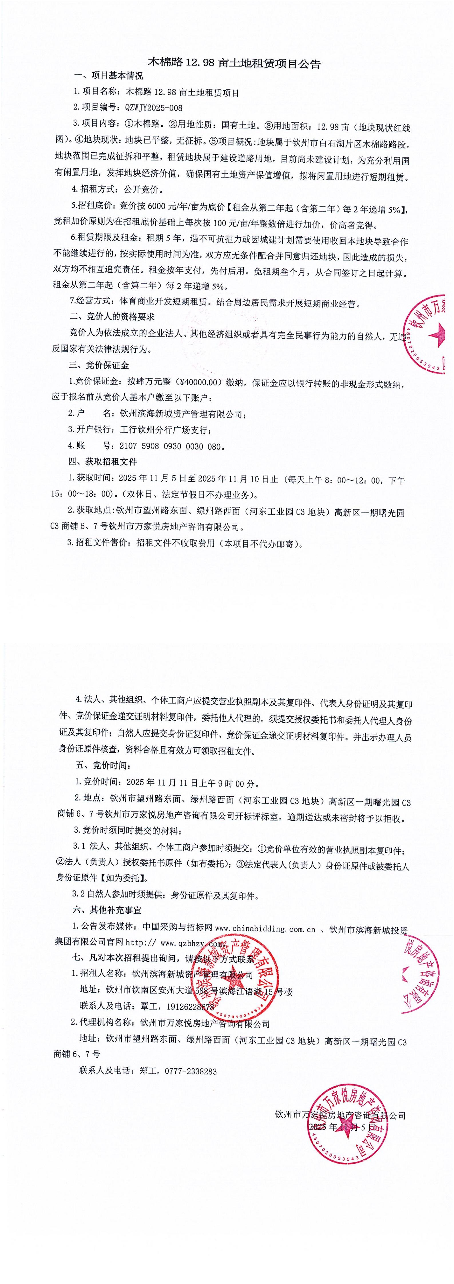 欽州市菩提路東面4畝土地公開招租項(xiàng)目