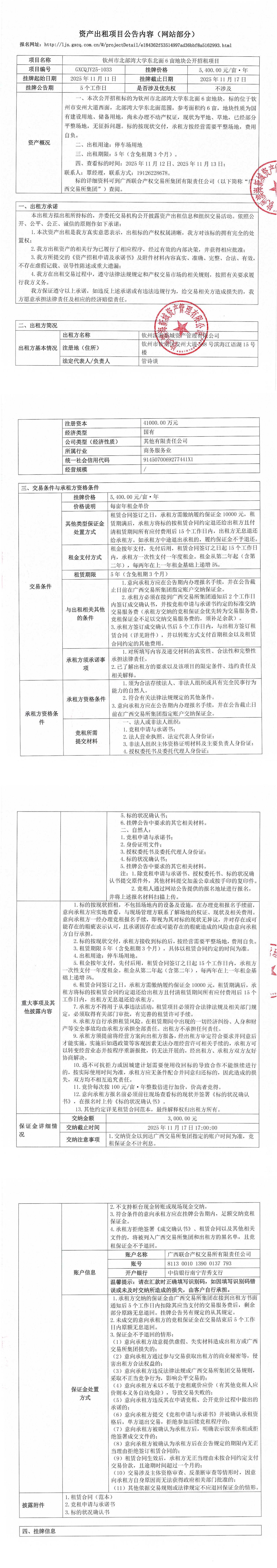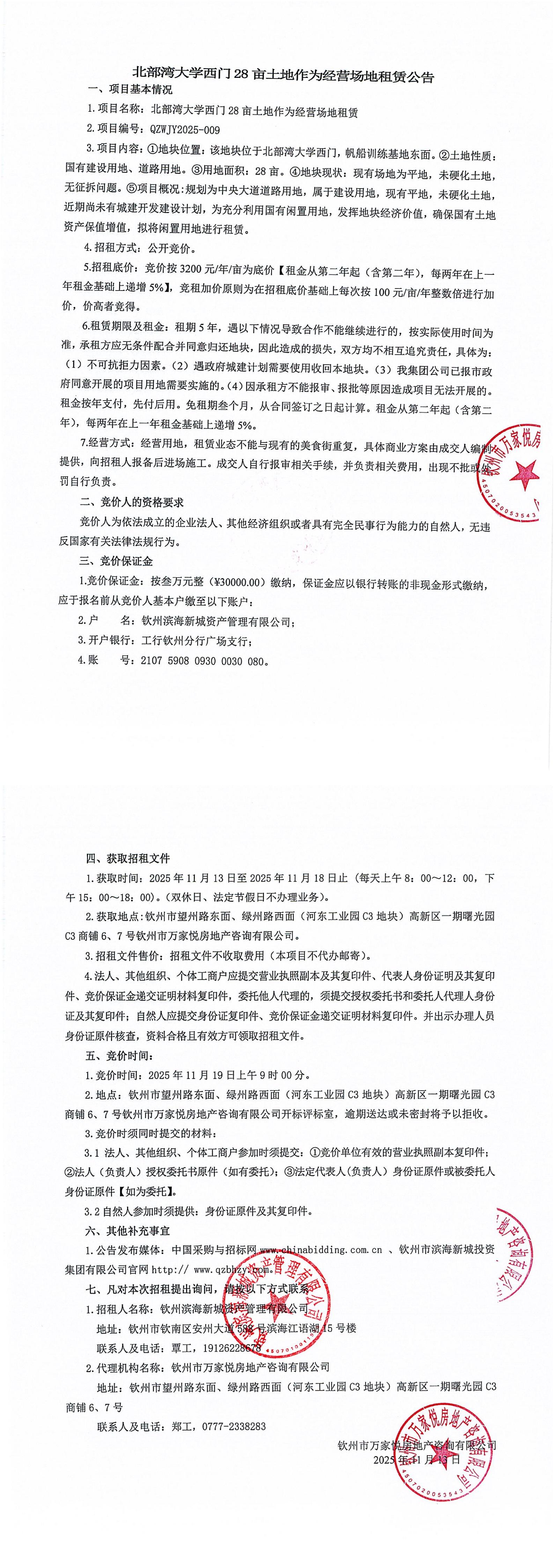 欽州市北部灣大學(xué)東北面6畝地塊公開招租項(xiàng)目