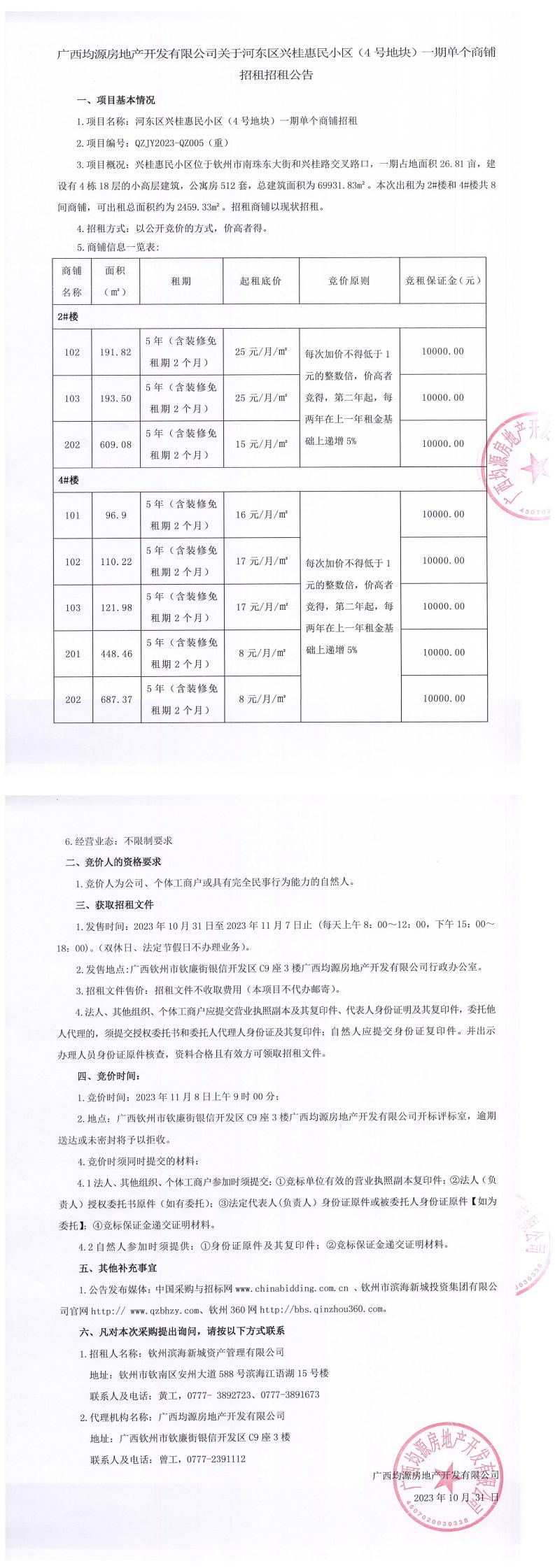興桂惠民小區(qū)(4號地塊)一期單個(gè)商鋪招租招租公告