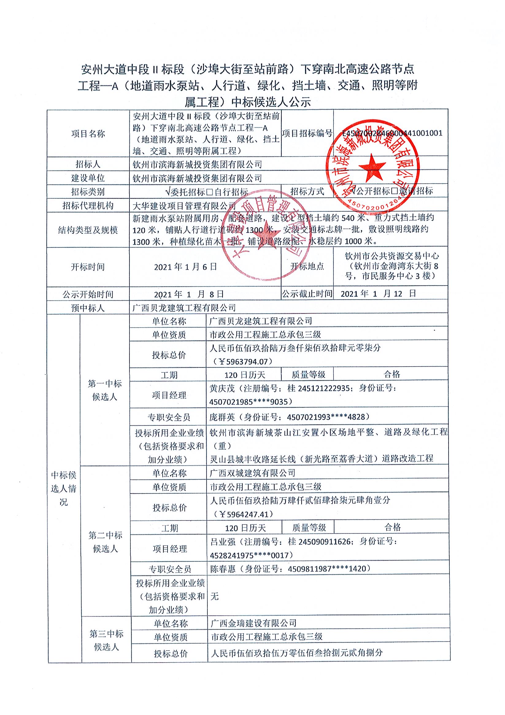 安州大道中段II標(biāo)段(沙埠大街至站前路)下穿南北高速公路節(jié)點(diǎn)工程—A(地道雨水泵站、人行道、綠化、擋土墻、交通、照明等附屬工程)中標(biāo)公告