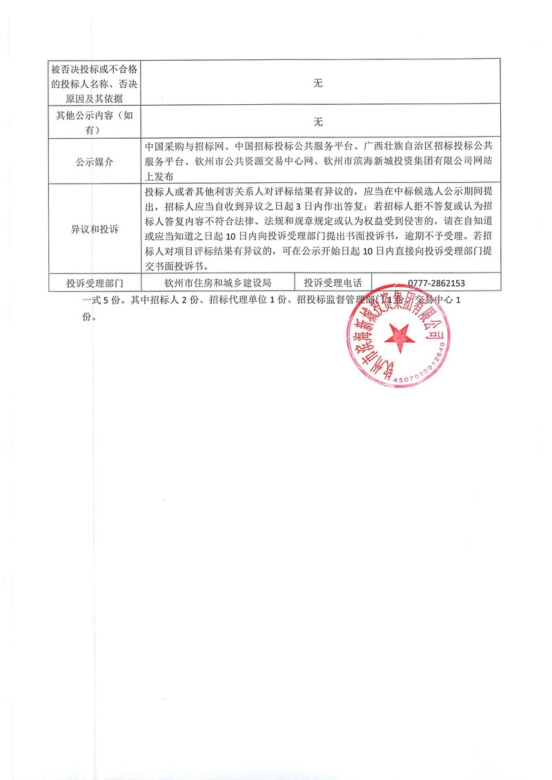 欽州市奧林名城6#樓20套人才公寓裝修工程中標(biāo)候選人公示
