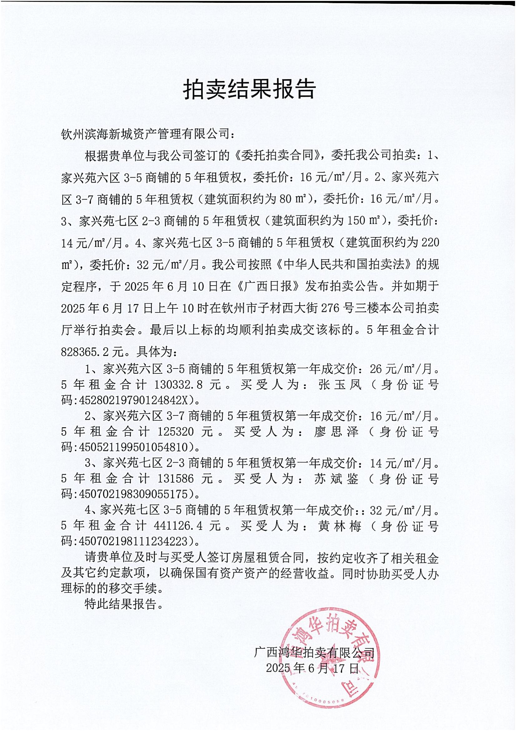 拍賣結(jié)果報告